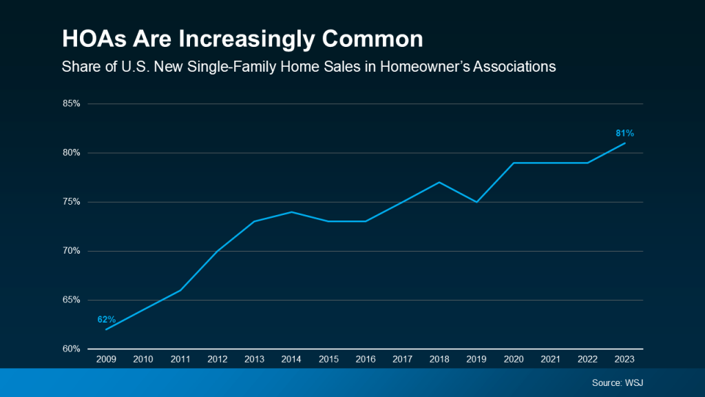 Does every house have HOA fees? No, not all homes have them. But they are common, especially in newer communities. In fact, over 80% of newly built single-family homes are now part of an HOA, according to the Wall Street Journal (see graph below):