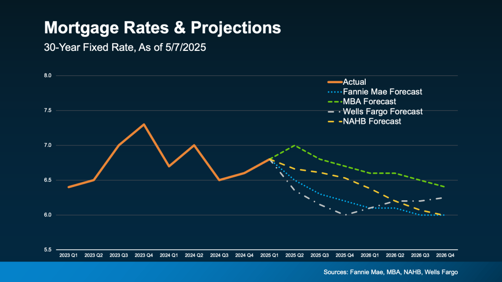 If you know a move is likely in your future, it may make sense to really think about your timeline. You certainly don’t have to move now. But financially, it may still be worth having a conversation about your options before prices inch higher. Because while rates are expected to come down, it’s not by much. And if you’re holding out in hopes we’ll see the return of 3% rates, experts agree it’s just not in the cards (see graph below):
